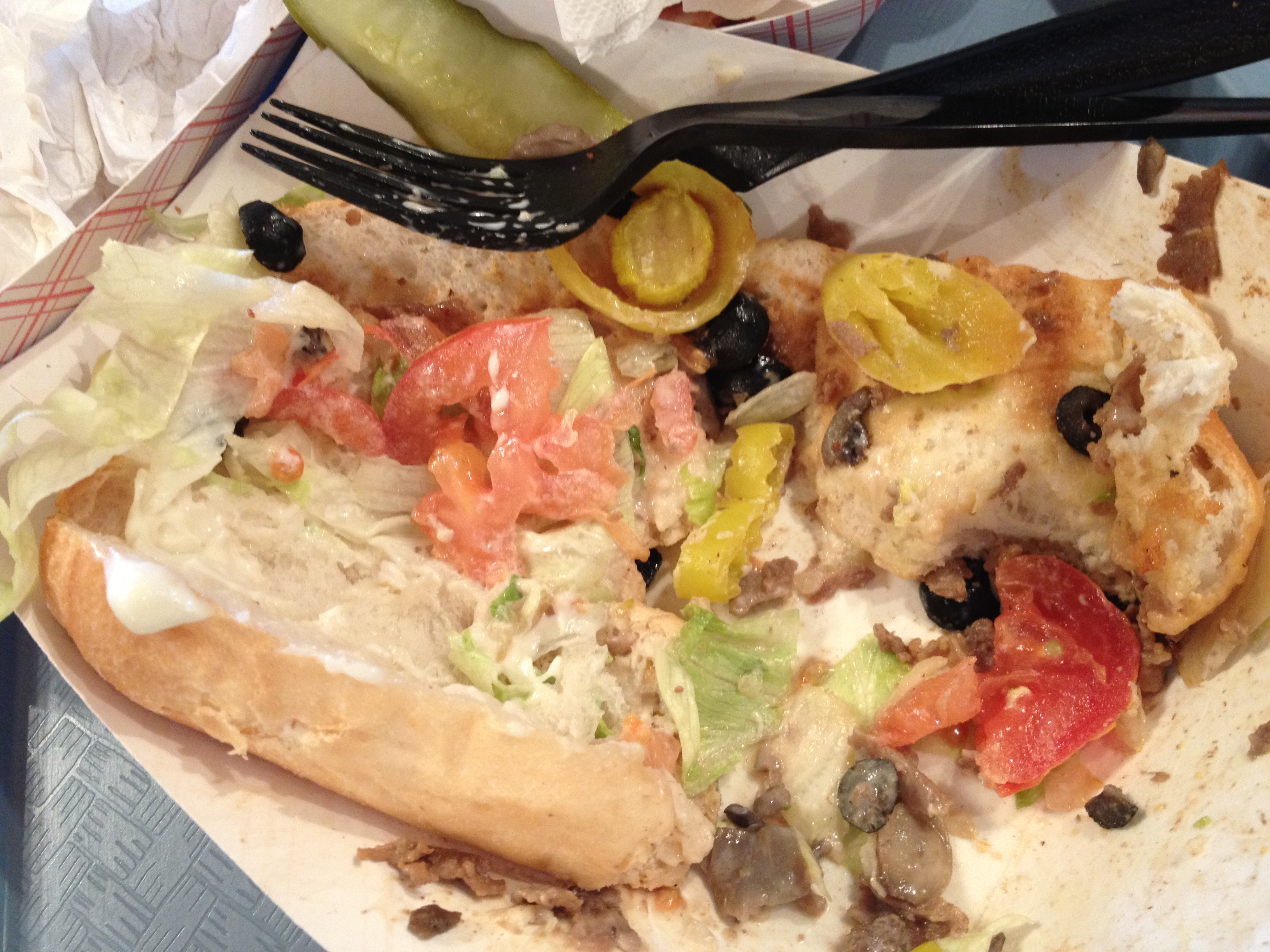 It’s a chain but it got high reviews on TripAdvisor, so we popped in. What in the world made Andrew think he needed 16 inches of Philly Steak, I’m not sure, but whatever. The smallest I could order was 8 inches, and since cheese is a MAIN ingredient of Philly CHEESE Steaks, there was no way were splitting one.