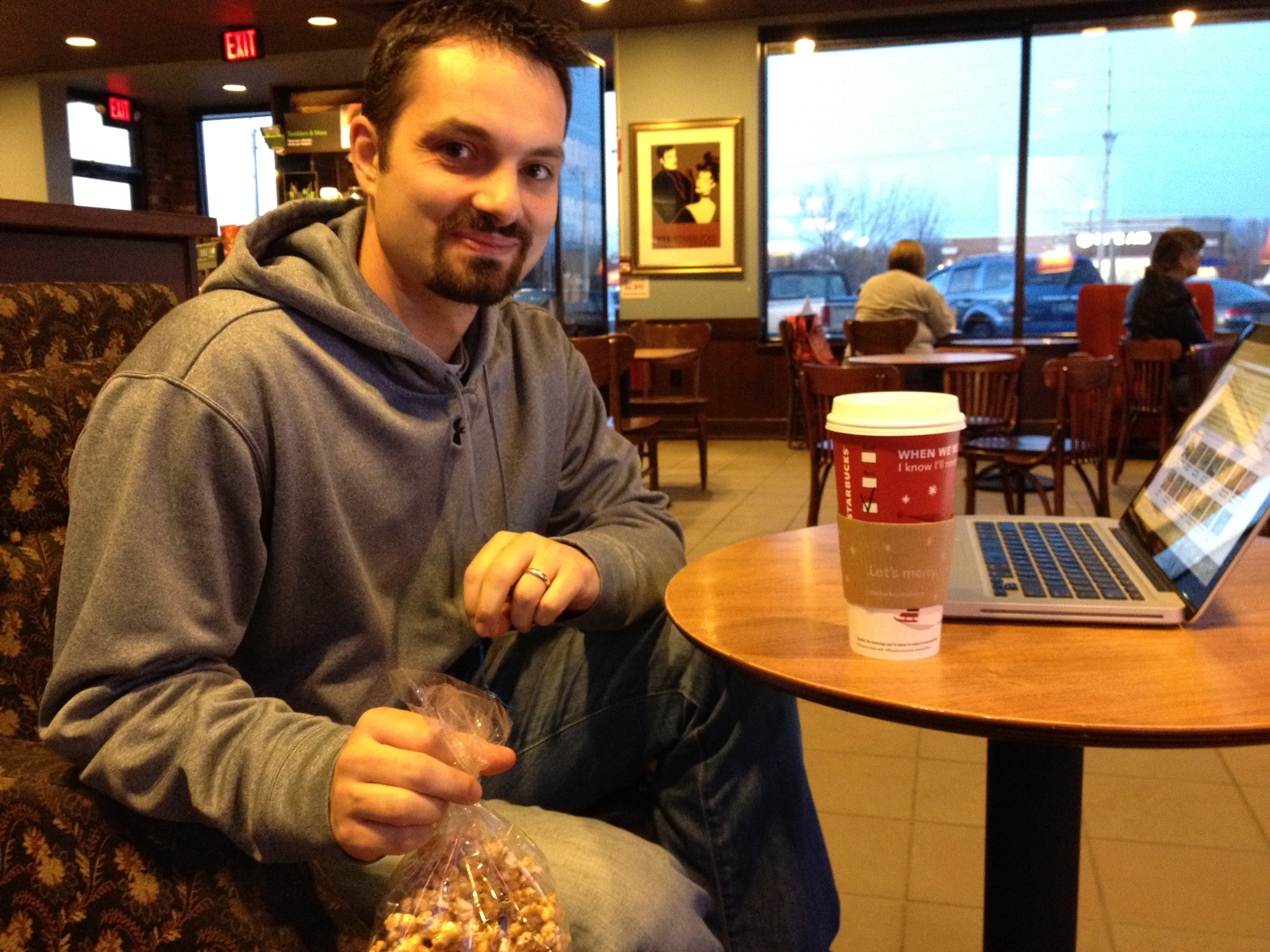 Because it’s the off-season now, lots of places were closing around that time, so we had to sell out and take a study break at Starbucks. Oh well. The free WiFi kept Andrew occupied while I studied, which apparently paid off!