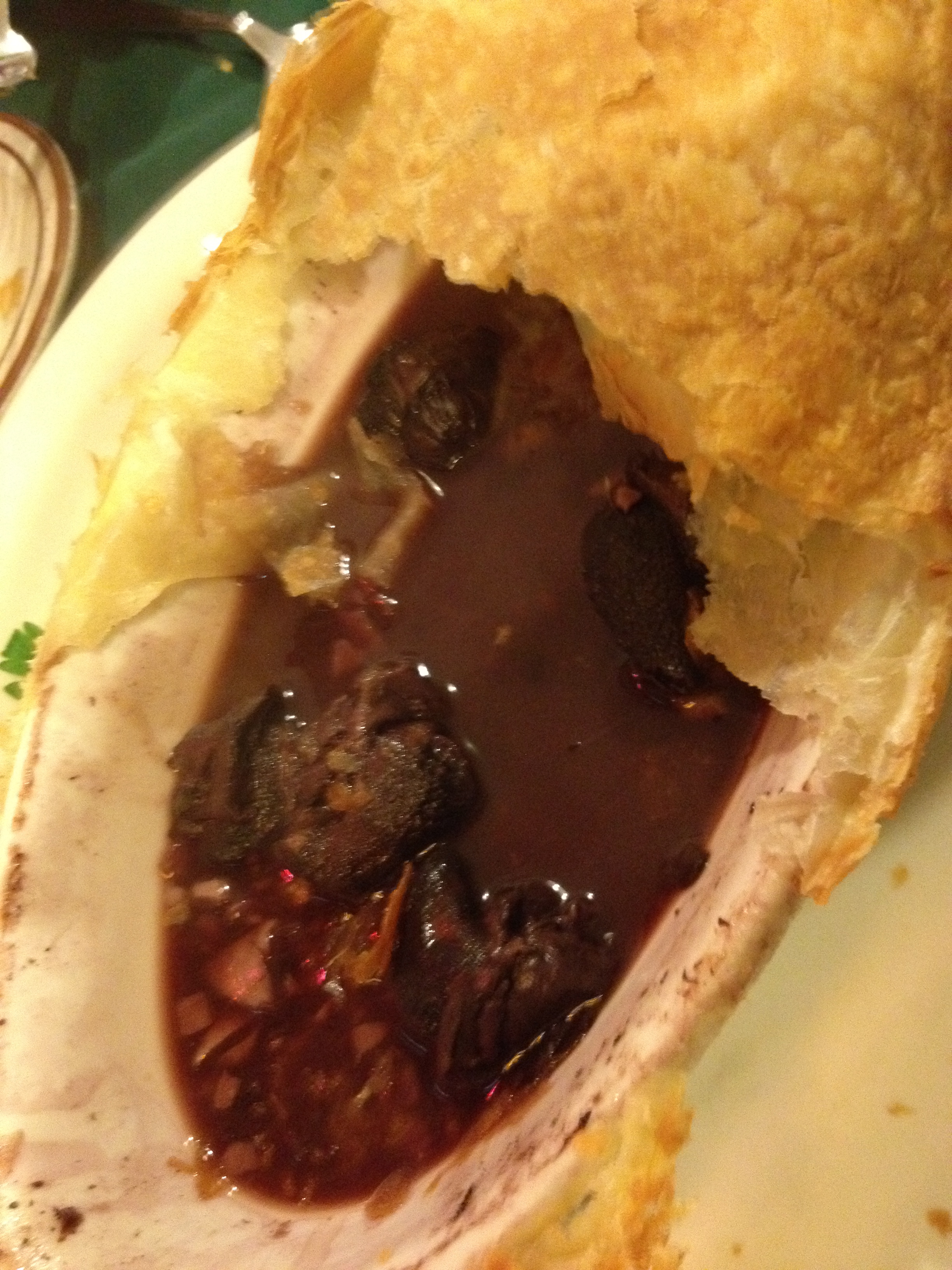 We also started with snails in a red wine sauce baked in a puff pastry that looked like a football. Andrew may not like cheese, but who else do you know who picks snails off the menu for an appetizer?