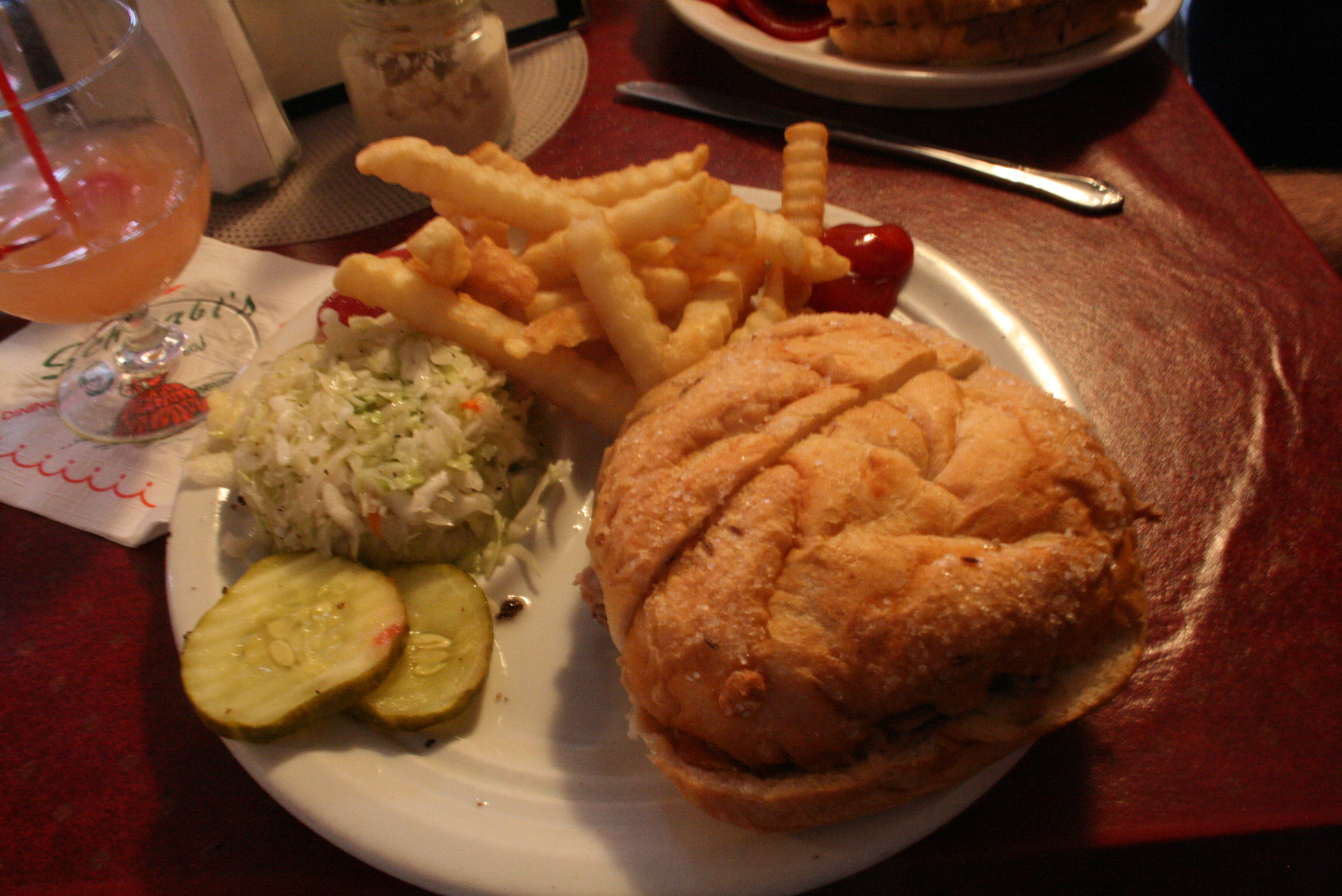 Andrew and I have been meaning to go to Schwabl’s since we first saw it after we got here. You can read all about it here, but basically it’s an old, well-known hole-in-the-wall place that is known for its roast beef and seafood. Surprisingly, neither Andrew nor his parents had ever been, so the four of us met there tonight.
