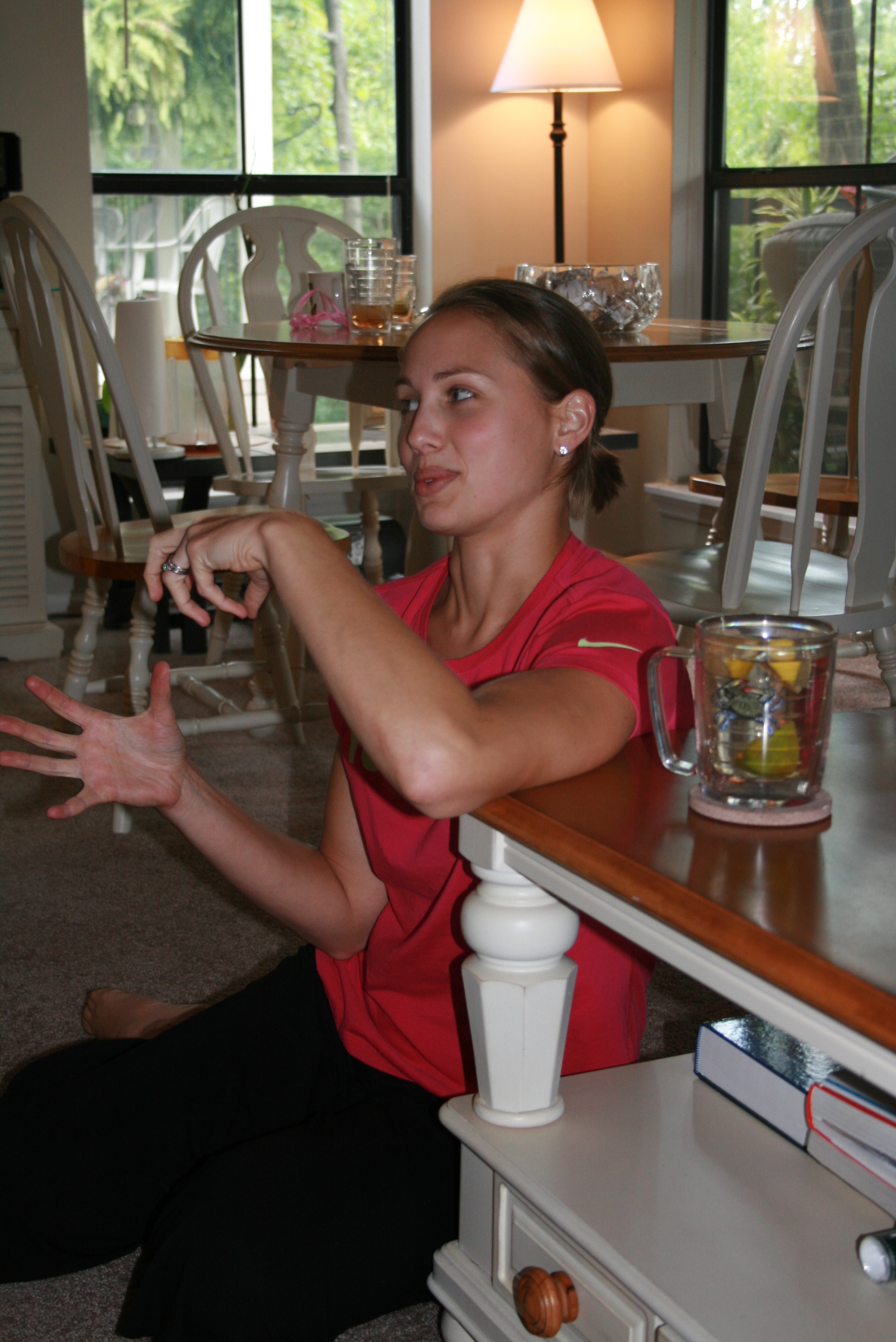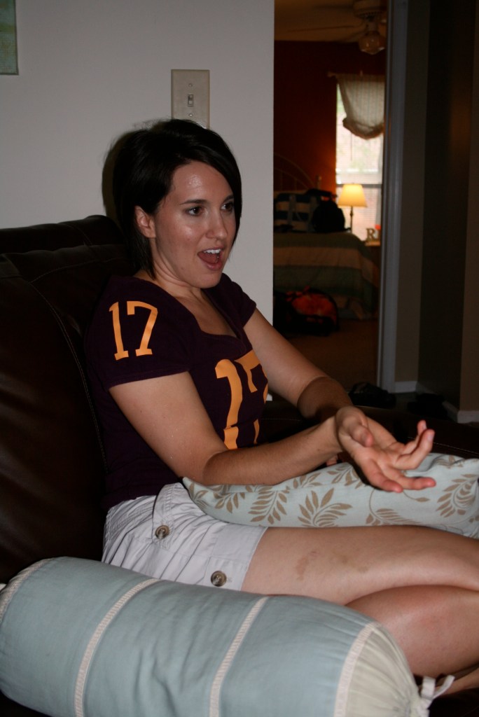 Carolyn wore the sash Abigail got her for her shower…