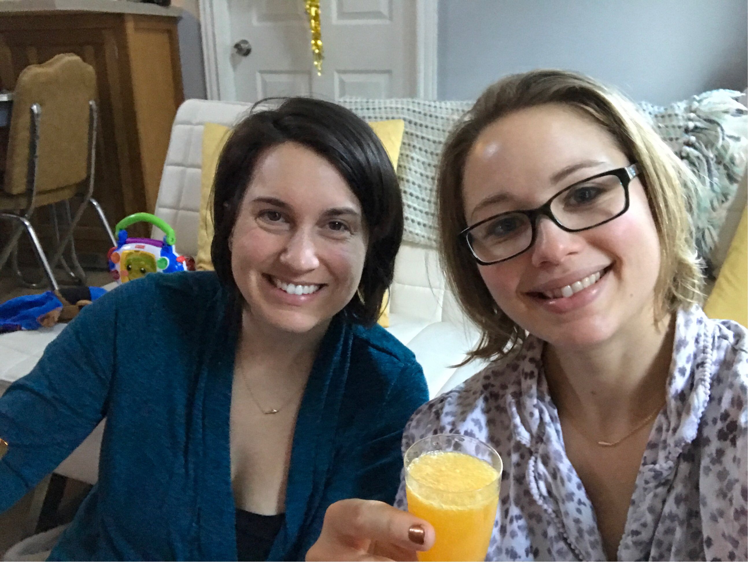 The next morning, we all lounged around in jammies, sipped mimosas and watched Nora play with her grocery cart and farmer’s market veggie bushels, gifts from Andrew and me.