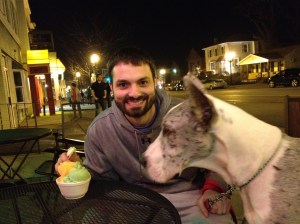 -We resisted the urge for more ice cream (well, I had to resist; I think Andrew has willpower of steel!) in favor of a stop at Rita’s on our way out of town. I made the mistake of trying their new chocolate peanut butter flavor… (Back story: I grew up with Rita’s in PA and LOVE IT. Mango is my ultimate favorite. I try different flavors all the time, but mango is where it’s at.) Anyway, I LOVED chocolate peanut butter and all of a sudden couldn’t choose! It’s not like I could get one, knowing I could come back any time for mango. Thankfully, Andrew opted for a large mango, which allowed me to order a chocolate peanut butter gelati–which features their vanilla custard. I was in sugar heaven.