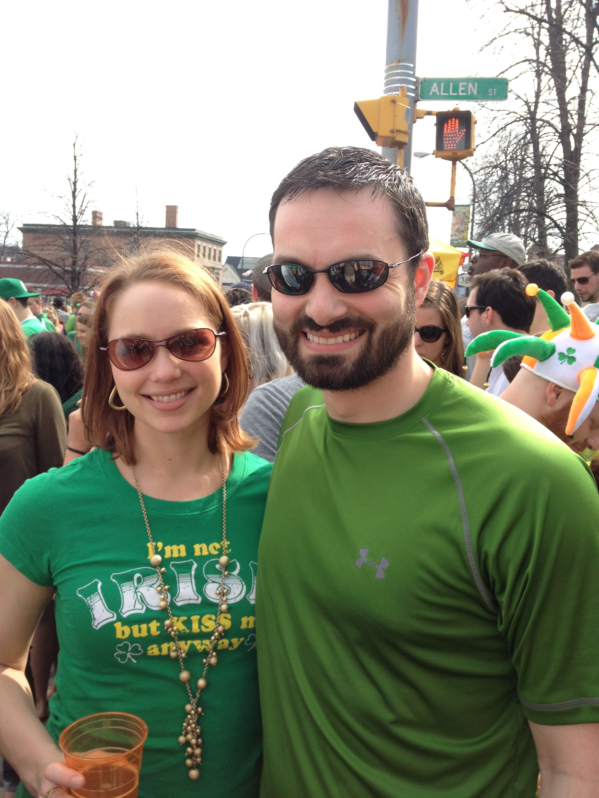 -Upon walking to our cars, Andrew and I realized we’d been fished! I know I’ve blogged about it before, but haven’t the slightest clue as to when or under what title… The short story: Dave and Jen own a giant stuffed fish and they (along with Emily and Dan) once hid it in our bed while we lived in Ohio. It’s been traded back and forth between us three couples ever since. The orange shirt it’s wearing? It says “East Aurora” and was how I dressed it when I shipped it back to the Diercks after we moved here. Gotta brainstorm its next trip to Ohio…this time to surprise the Wilhelms!