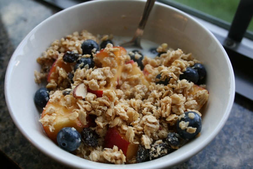 I love granola. LOVE. This is Wegmans Granola with Raisins, and unfortunately, it’s only OK. I mean, what did I expect? It’s just light and not very cluster-y. I’d rather it be chock-full of goodies and in big chunks. Alas, it was cheap. It was the peach, blueberries and coconut milk that really did it for me!