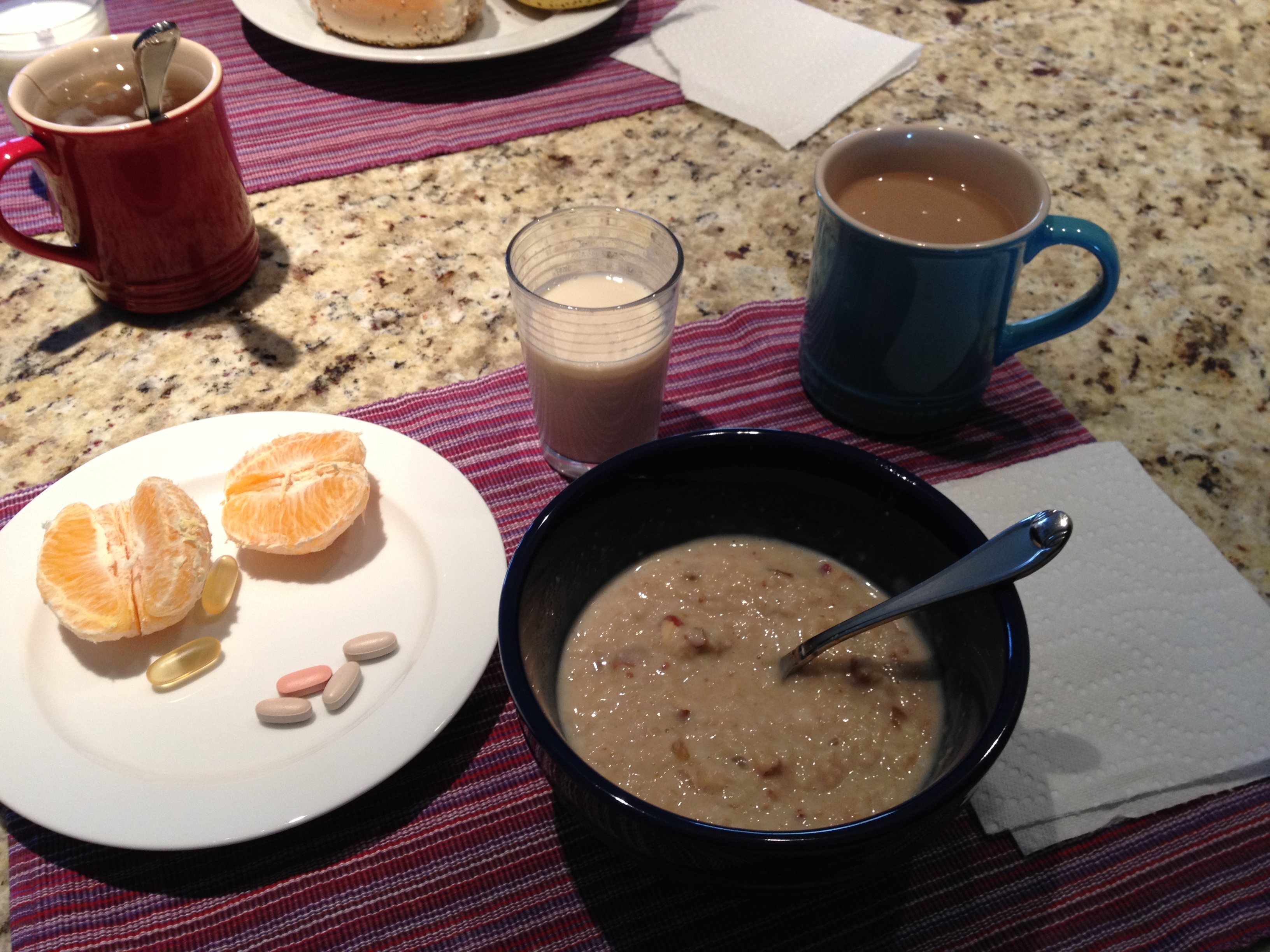 -instant oats in the microwave (after many old-fashioned oats on the stovetop bowls, I think I’ve finally realized I like the texture of instant better. plus, I was hungry!)