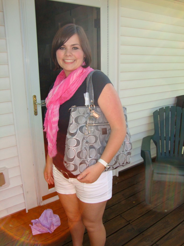 Showing off some of her new goodies. Grandma did well with the purse 🙂