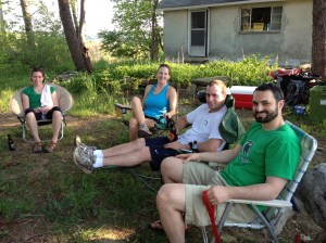 So we went. And it was fun. The location was actually the giant parcel of land (100 acres, maybe?) belonging to the family of one of Andrew’s co-workers. There was a tiny ‘cabin,’ but it was all but useless. Apparently it’s being remodeled/renovated later this summer…