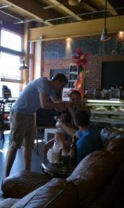 Early risers Hadrian and Aiden hangin’ out the next morning: