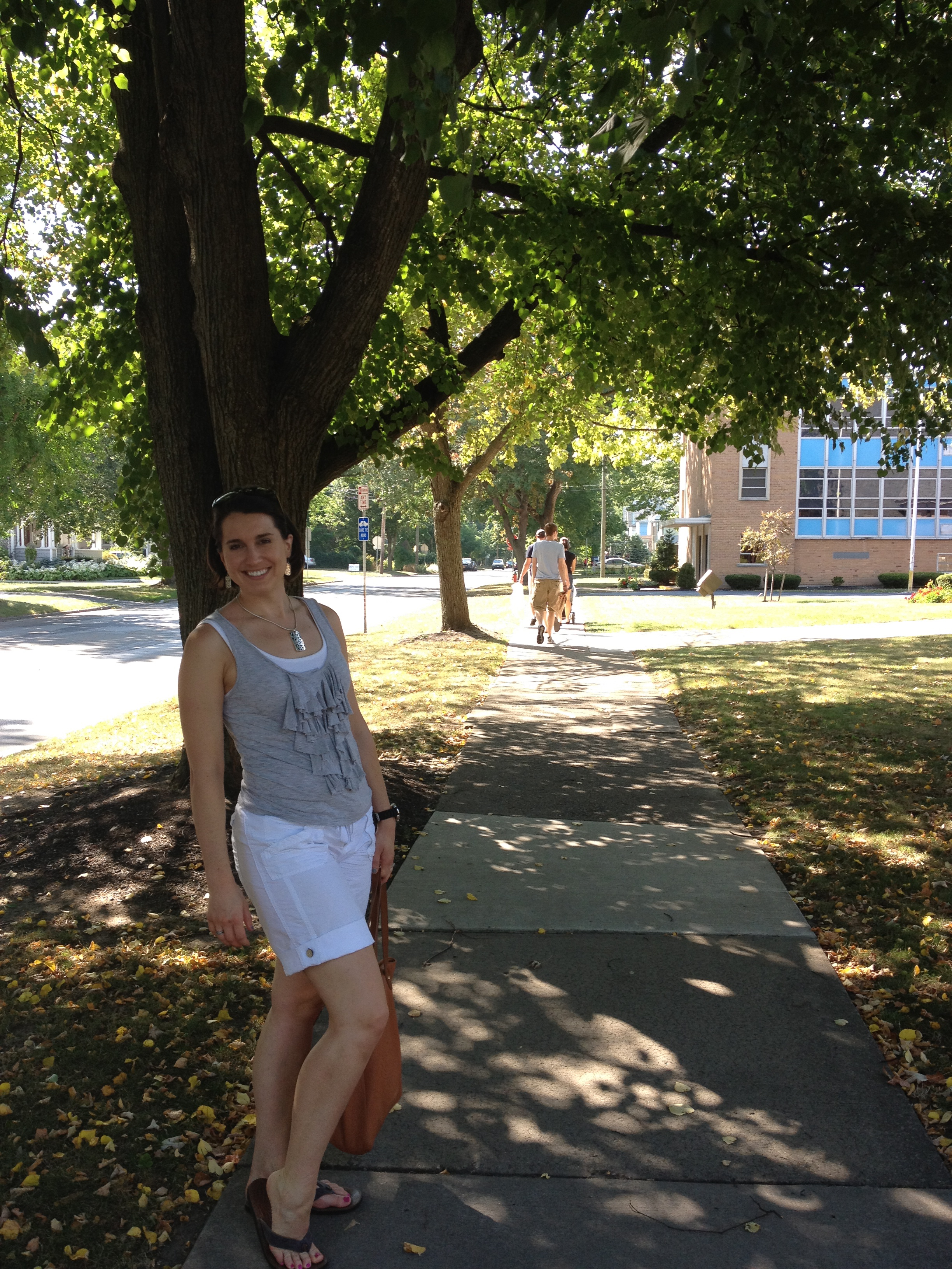 Miss Emily posing while we walked FROM OUR HOUSE TO MAIN STREET (how awesome is that?!):