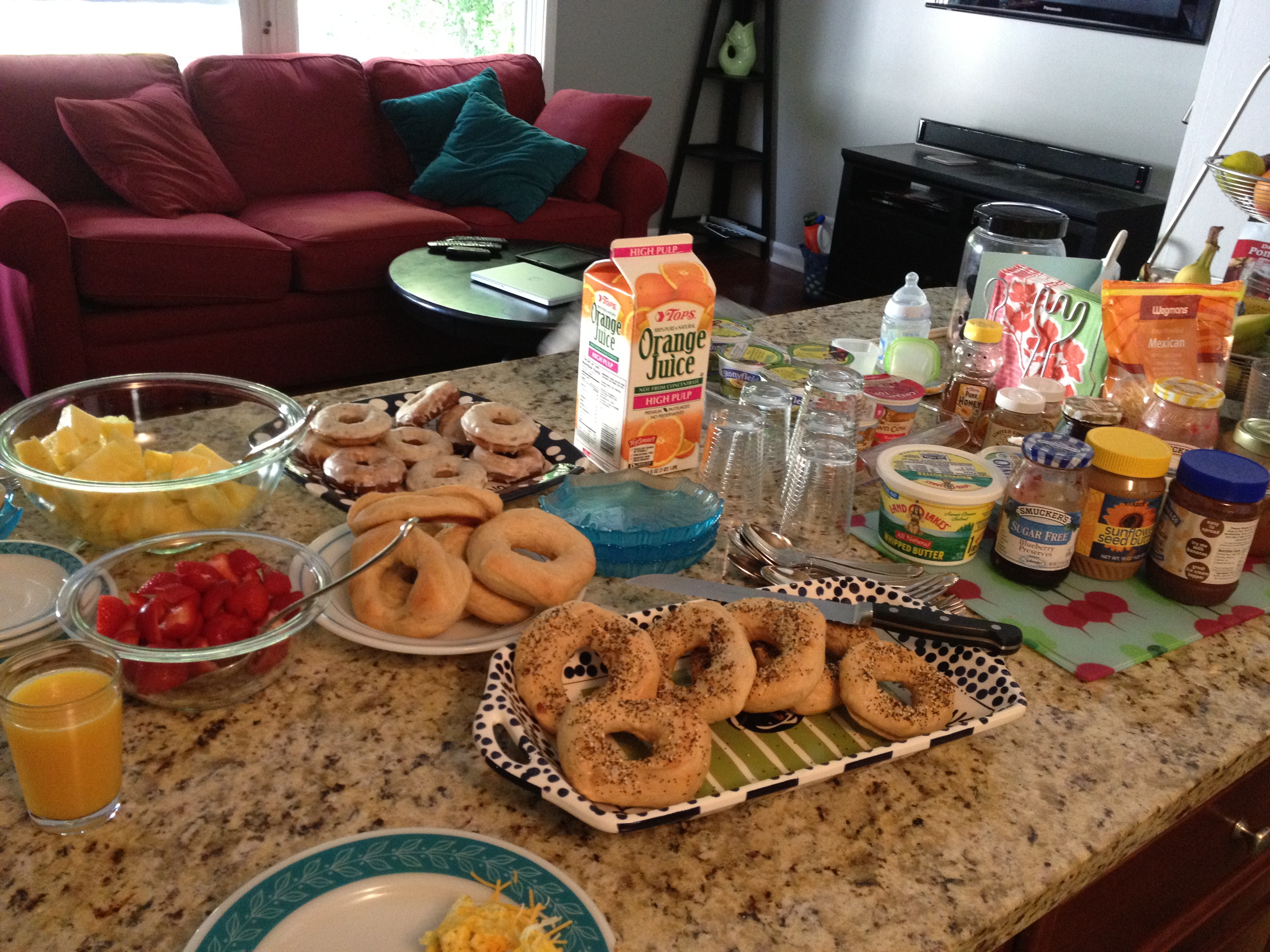Homemade bagels and blueberry donuts!