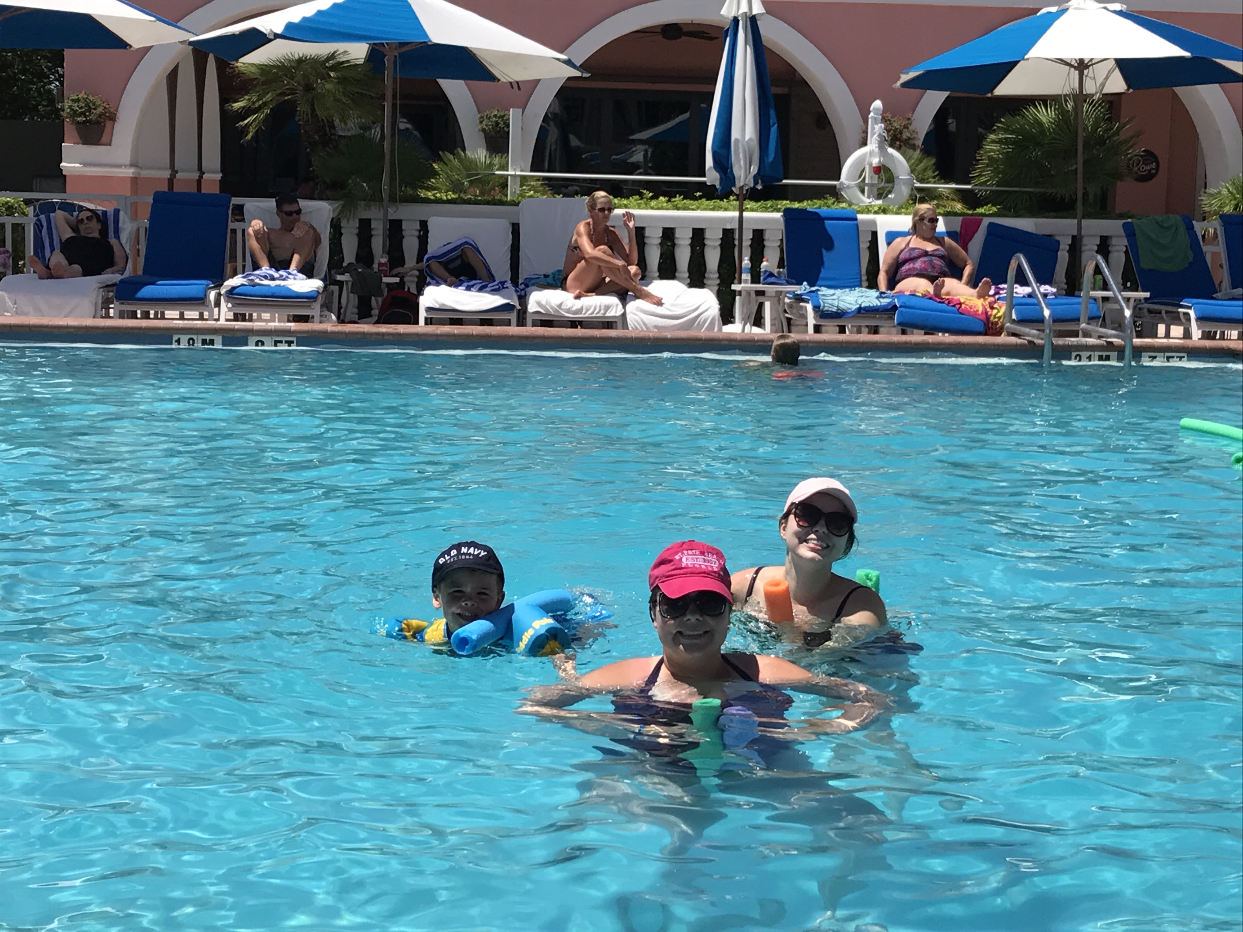 We spent most of our time camped out by the pool, taking turns swimming with Blake, who is a little fish!