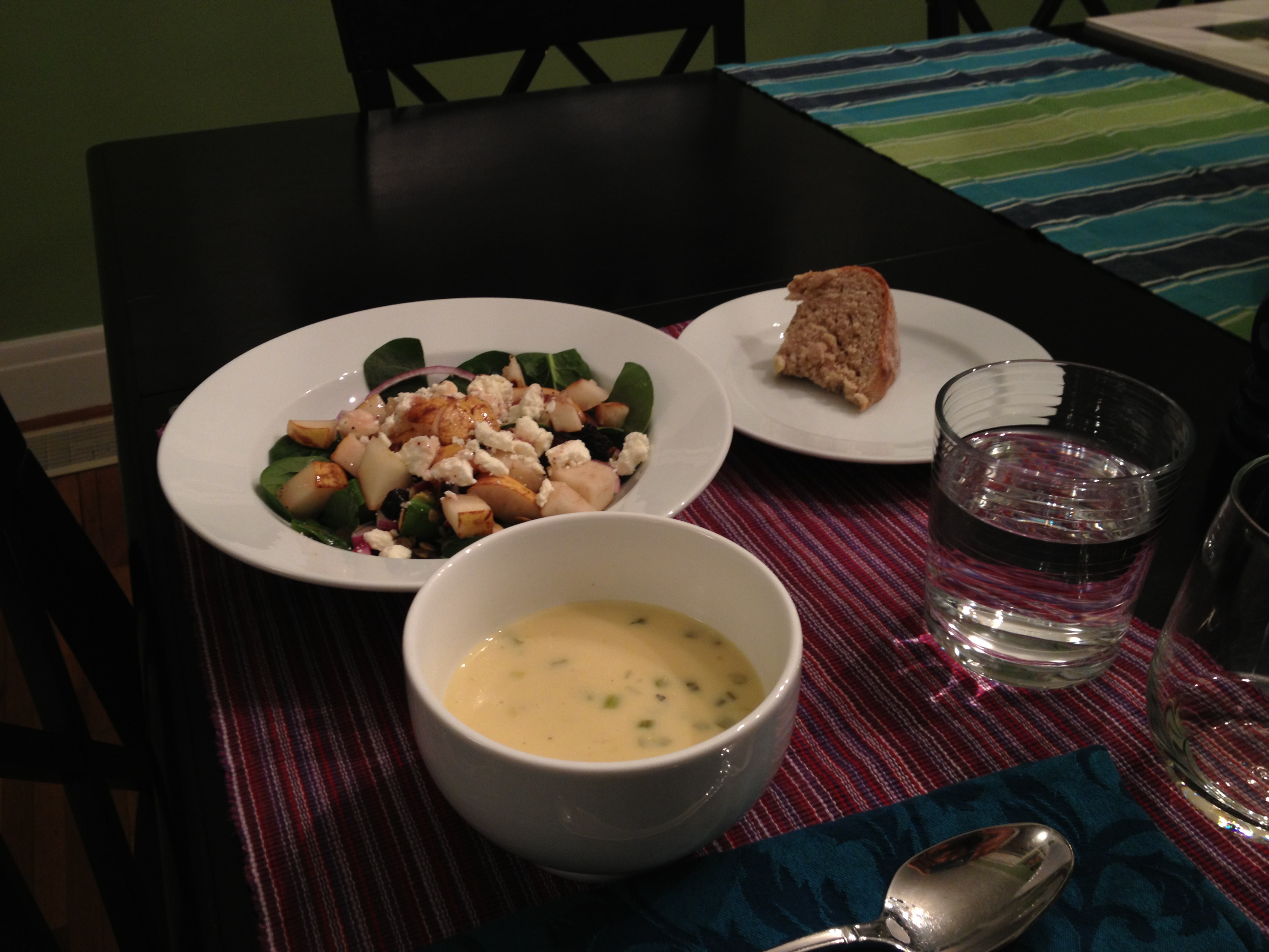 This one was a toss-up, but Andrew ate it nonetheless. It’s Cooking Light’s Smoky Black Bean and Butternut Squash Salad. I’ve had it in my ‘to-try’ binder for more than a year and decided it was time to try it, Andrew’s dislike of beans be darned! It was quite spicy–chipotles in adobo will do that! Add avocado next time and it would be even better.