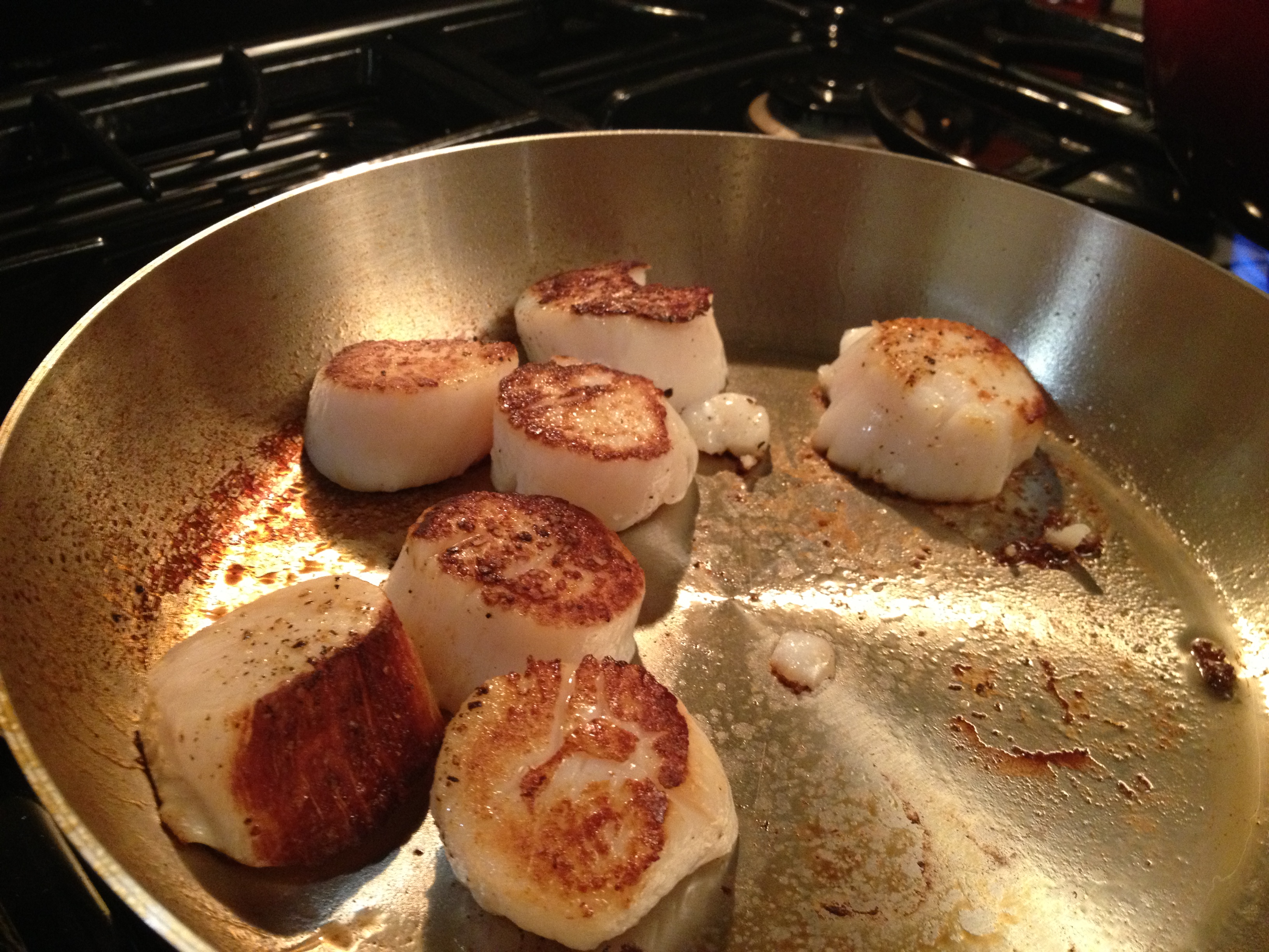 Cooking Light’s Seared Scallops with Bacon, Cabbage and Apple. My photo of my plate didn’t turn out well, but the color I got on the scallops was beautiful. I’d never made scallops before, and Andrew had never tried them. Can you believe he admitted they “weren’t fishy at all,” and that “I’d eat them again” came out of his mouth? I almost fell out of my chair.