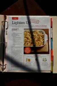Lighten Up versions of mac and cheese and cheesecake. I’m always game for stuff like that! (BTW, since taking these photos, I actually tried the mac recipe on the left–TERRIBLE.)