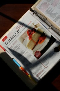 Well. There is a bit of a story here. OK, not really a story. And I only intended to take a picture or two, but I was getting such great shots and having so much fun (yes, recipes really DO excite me that much) that I just kept clicking away. And I hate to waste such great photography (for a dunce with an expensive camera), so here it is. I had thought about calling it “a primer on recipe organization,” but really, it’s just gratuitous pictures of my new recipe binders (basically, I went from one to two). I’ll offer a few tidbits along the way.
