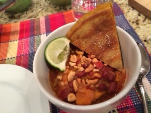 The stew is slightly sweet with just a bit of a kick. Serve with lime wedges and chopped peanuts!