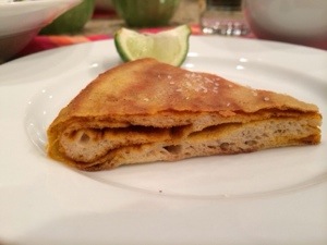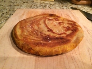 To go with it, I made Healthy Bread in Five Minutes a Day’s ‘Msemmen,’ which is an Algerian flatbread. I thought it would go nicely. It was super easy and absolutely amazing. Basically, you make their basic dough recipe, roll it out, spread a spice mixture on it as if it were pizza, then you roll the dough into a log and swirl it into a cinnamon roll shape before letting it rest for 20 minutes. After that, you simply roll it out again, which causes the spice mixture to create layers in the dough. Then, pan-fry in a skillet.