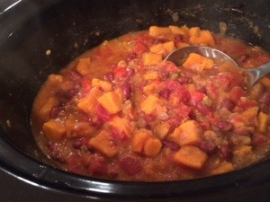 Awhile ago (as in, I don’t even remember how long ago), my friend Regina (at least I think that’s who it was) recommended a recipe for a sweet potato stew to me. I don’t even remember why she thought to tell me about it. I’m just all sorts of forgetful these days, aren’t I?!