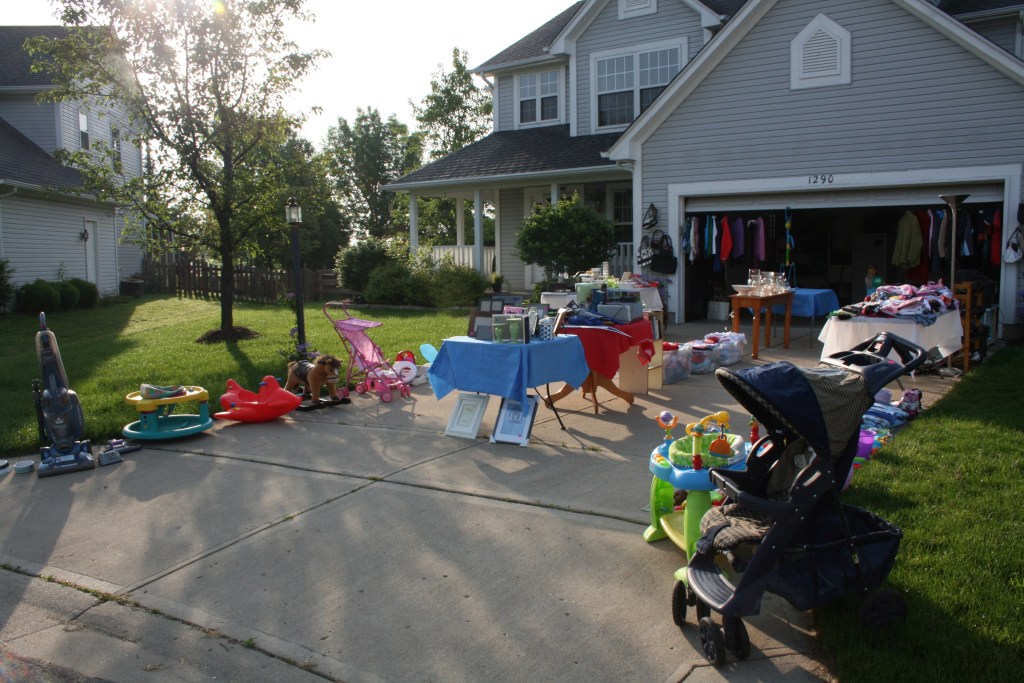 Our neighborhood held their annual yard sale yesterday. Why I participate in these things I don’t know. Seriously, it’s so much work and takes up your ENTIRE Saturday…is it really worth it? I suppose the $183.15 sitting in my “Holly’s Savings” envelope says it was. And we’re moving. And I’m a clutter-phobe anyway, so a yard sale is just a way to profit (literally) from my quirkiness.